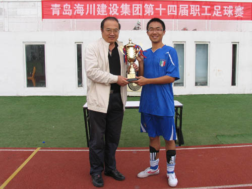 繼10月9日分組預(yù)賽之后,17日(星期天)上午,海川集團(tuán)“海川建設(shè)杯”第14屆職工足球賽在市北區(qū)中聯(lián)運(yùn)動公園足球場進(jìn)行了半決賽和決賽。吳鑫董事長和欒恒忠副總裁蒞臨球場為球員鼓勁,并在閉幕式上分別為前三名球隊(duì)頒獎(jiǎng)。決賽是在三分公司足球隊(duì)和物流分公司足球隊(duì)之間進(jìn)行的,這是一場精彩的進(jìn)球大戰(zhàn),最終三分公司以5:4的比分險(xiǎn)勝物流分公司隊(duì),獲得冠軍;物流分公司獲得亞軍;海川總部以4:2戰(zhàn)勝二分公司隊(duì)獲得第三名。