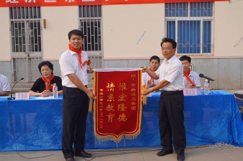 9月20日下午,秋高氣爽、陽(yáng)光明媚,膠南市黃山經(jīng)濟(jì)區(qū)希望小學(xué)落成儀式在學(xué)校大操場(chǎng)隆重舉行。激昂的國(guó)歌聲后,少先隊(duì)員們?yōu)槌鱿I(lǐng)導(dǎo)敬獻(xiàn)紅領(lǐng)巾,以此來(lái)表達(dá)孩子們的崇高敬意。一位學(xué)生代表用稚嫩的童音道出了對(duì)青島海川建設(shè)集團(tuán)及支持希望工程事業(yè)建設(shè)的各類(lèi)愛(ài)心團(tuán)體的誠(chéng)摯感謝,和臺(tái)下上千名含苞待放,映襯在陽(yáng)光里的一張張幸福笑臉一樣,他們都是祖國(guó)的未來(lái)和希望,也讓在場(chǎng)的每一位成年人對(duì)“捐資助教、功德無(wú)量”這句話有了更深刻的理解和感悟。黃山經(jīng)濟(jì)區(qū)希望小學(xué)校長(zhǎng)懷著激動(dòng)地心情向海川集團(tuán)贈(zèng)送錦旗一面,愛(ài)心助學(xué)的善舉也贏得了在場(chǎng)師生一次又一次熱烈的掌聲。集團(tuán)黃中坡副總裁代表發(fā)言,他特別指出,今年恰逢集團(tuán)成立60周年之際,本著“節(jié)儉辦大慶”和“注重社會(huì)公益性”的宗旨,集團(tuán)將主要活動(dòng)資金拿出來(lái)援建黃山經(jīng)濟(jì)區(qū)中心小學(xué),另外發(fā)動(dòng)企業(yè)職工向老一輩建筑人曾經(jīng)援建過(guò)的四川藏族甘孜地區(qū)捐獻(xiàn)衣物。通過(guò)一系列與社會(huì)接軌的主題活動(dòng),力爭(zhēng)將本次大慶辦得更有意義。最后他衷心希望膠南市黃山經(jīng)濟(jì)區(qū)中心小學(xué)的全體同學(xué)從小樹(shù)立遠(yuǎn)大目標(biāo),刻苦學(xué)習(xí),努力向上,爭(zhēng)做國(guó)家棟梁之才,立志回饋社會(huì),報(bào)效祖國(guó)。青島團(tuán)市委副書(shū)記張海軍和膠南市委副書(shū)記佟海燕也出席儀式并與海川集團(tuán)黃中坡副總裁一起為希望小學(xué)揭牌,同時(shí)就海川集團(tuán)對(duì)教育公益事業(yè)的傾情參與和大力支持給予了充分肯定和高度評(píng)價(jià)。
