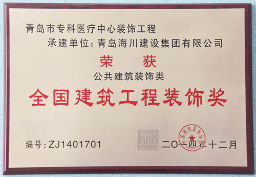 ??漆t(yī)療中心工程捧回全國建筑工程裝飾獎(jiǎng)
